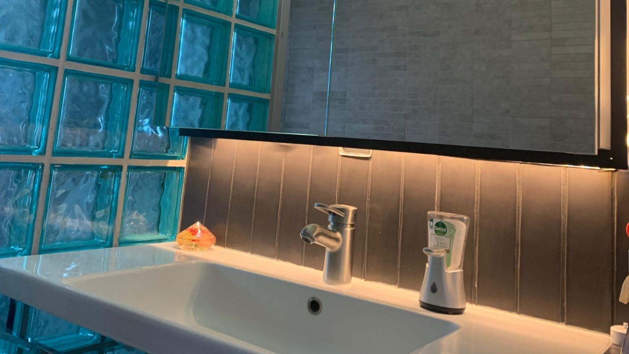 De sensor schakelaar bevindt zich aan de rechter onderzijde van de spiegelkast