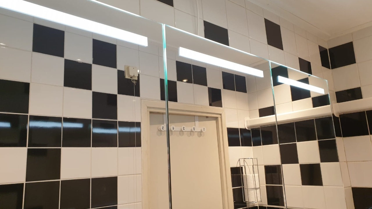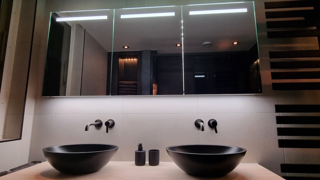 Daarnaast zorgt de geïntegreerde verwarming ervoor dat de spiegeldeuren niet beslaan na bv het douchen, handig! De verlichting en verwarming worden in- en uitgeschakeld middels een handbeweging langs de sensor die aan de onderzijde van de spiegelkast is gemonteerd.