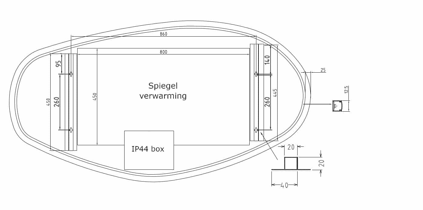 Achterframe Degelijk en luxe aluminium achterframe, valt binnen de spiegel voor een fraai zwevend effect