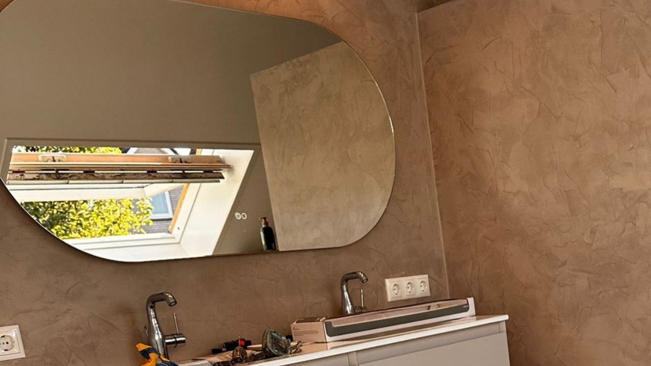 Indirecte verlichting aan de achterzijde van de spiegel. Dit type verlichting zorgt voor een sfeervol lichtschijnsel over de wand