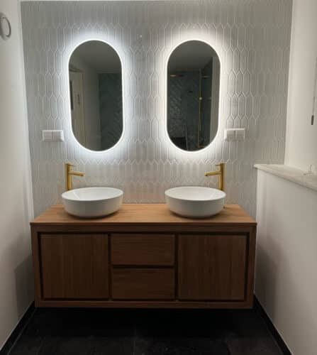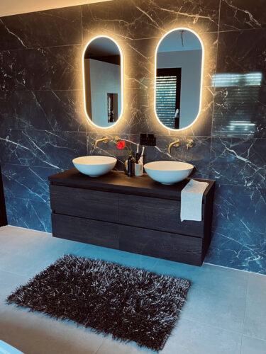 Daarnaast is deze ovalen spiegel voorzien van spiegelverwarming, zodat de spiegel niet beslaat na bv het douchen. Heeft u een dubbele wasbak? Denk dan eens aan 2 ovale spiegels naast elkaar!